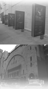 (写真)上:サインボード/下:シティセンター/右上:デイビッドコッチシアター/撮影 三谷